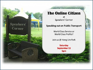 In tandem with the Speakers’ Corner event, TOC is currently hosting a “Public Transport Week” on its website, theonlinecitizen.com, from 8 to 14 September.